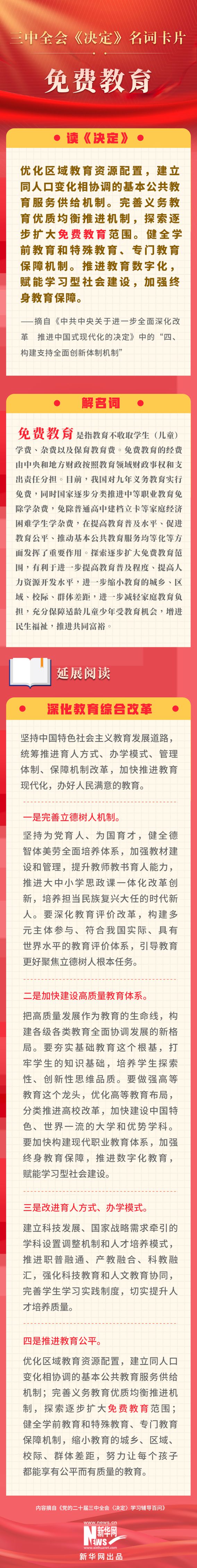 三中全会《决定》名词卡片天天学:免费教育